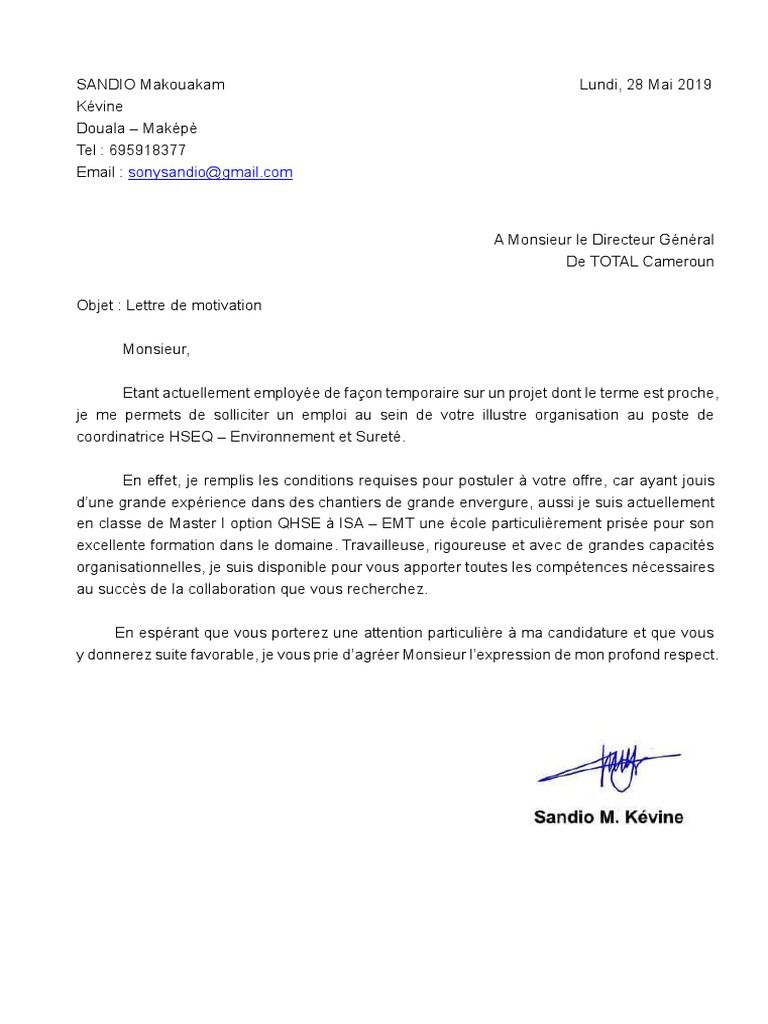 Exemple de lettre de motivation pour emploi exemple de lettre de motivation pour la vente exemple de lettre de motivation exemple de lettre de motivation emploi. Letters of motivation are formal so use formal business style and format. Cover letter V Cover letters by job position economic sector Are you looking to apply for a job in a specific position and you need a cover letter in French.